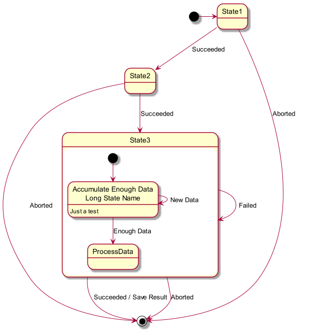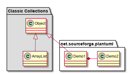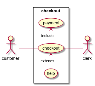 Alternatively, a PlantUML diagram can be specified in a separate .puml file and inserted into a page using a <puml> tag.